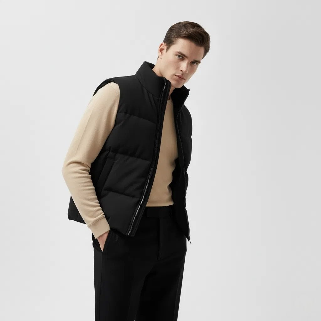 Engineered for unpredictable seasons, this nylon puffer vest delivers mid-weight insulation without bulk. The matte finish nylon exterior resists shine while maintaining durability, making it a versatile layering piece for transitional weather. Slip it on over a base layer for added warmth, or wear it standalone during mild conditions. A practical essential that bridges the gap between seasons.